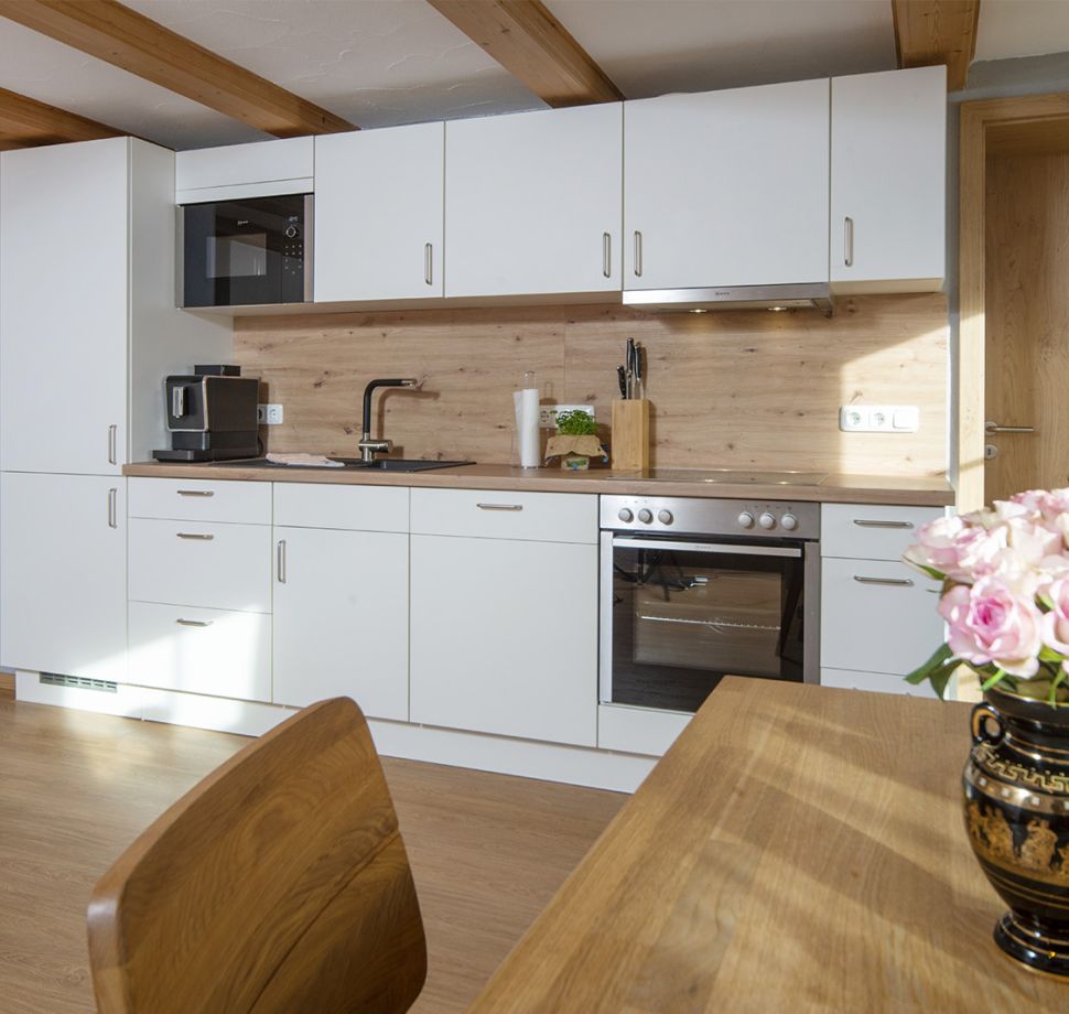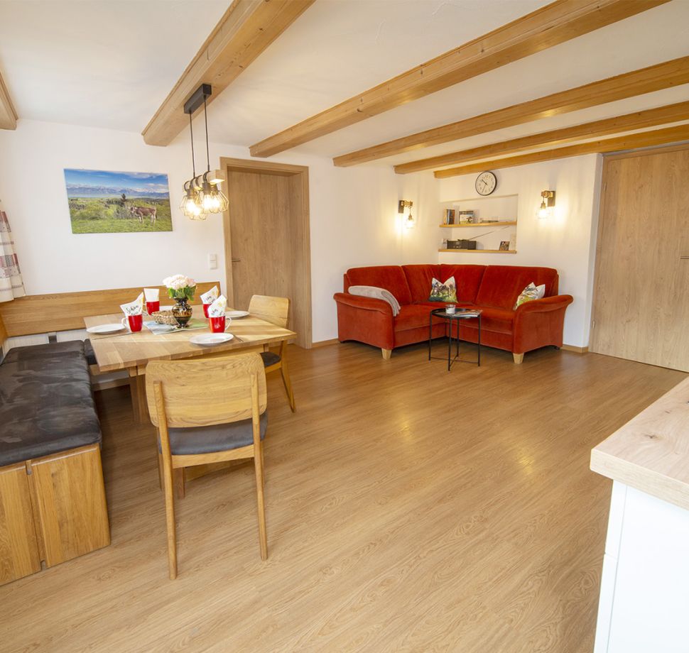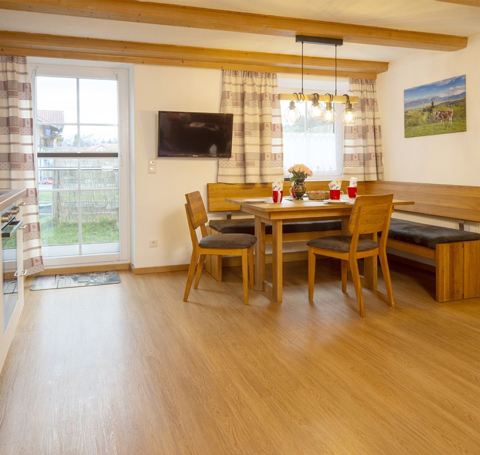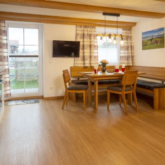 Die Ferienwohnung „Bommer“ ist ca. 75 m² groß und liegt im Erdgeschoss. Sie verfügt über eine geräumige Wohnküche, zwei separate Schlafzimmer, Badezimmer mit Dusche und WC und einer Terrasse im Osten, auf der Sie bereits am Morgen zum Frühstück die Sonne genießen können.