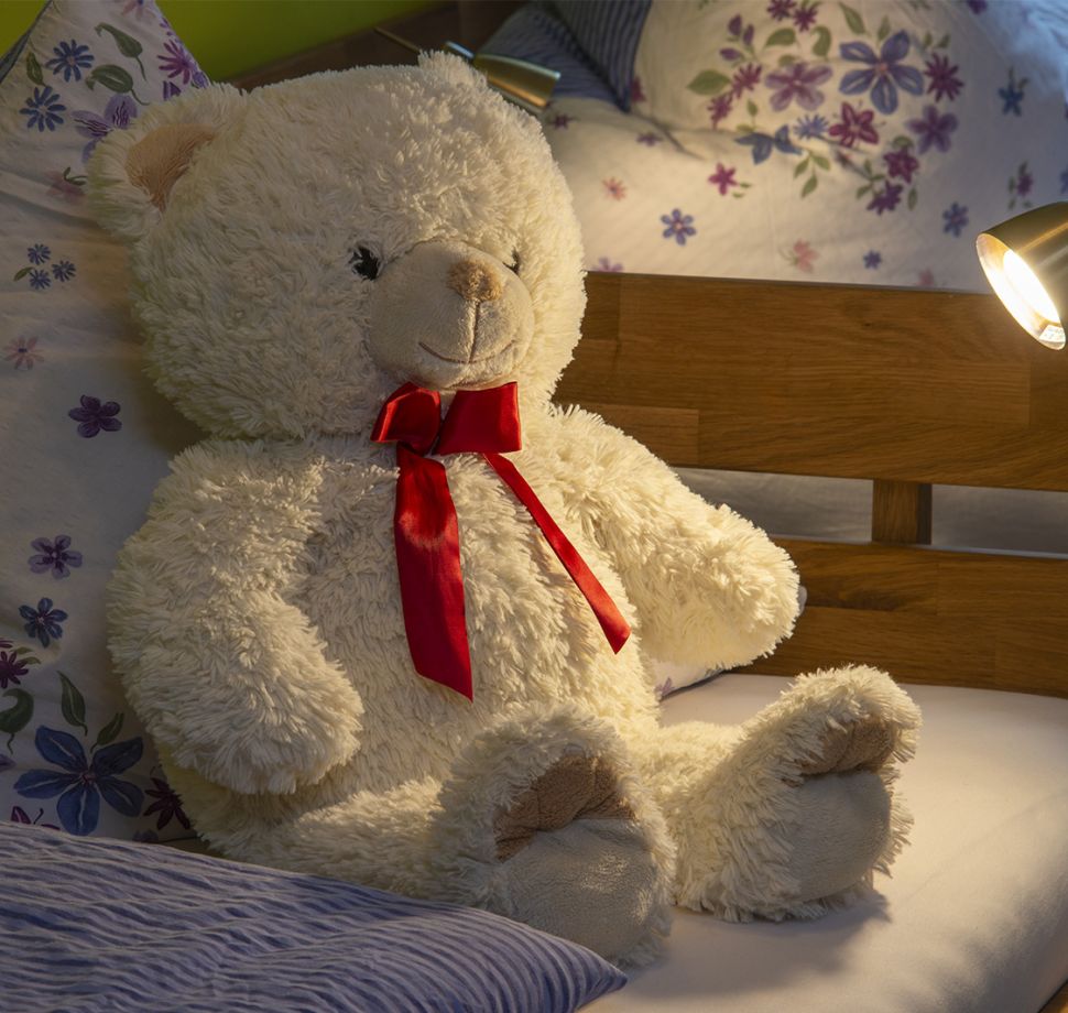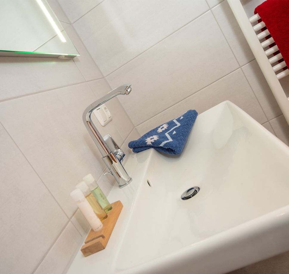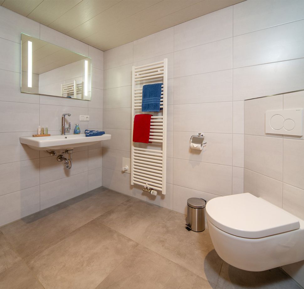Im Schlafzimmer befindet sich ein Wickeltisch. Im Kinderzimmer gibt es ein Nachtlicht. Im geräumigen Badezimmer mit WC befindet sich eine große Dusche (Regendusche), ein Handtuchwärmer, ein Hocker, WC-Aufsatz und ein Baby-Töpfchen. Zudem gibt es ein separates WC.
